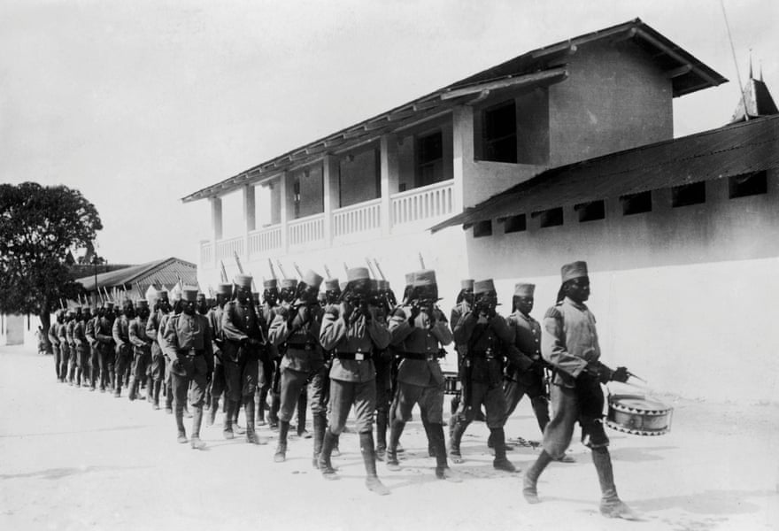 Troops under German command in Dar es Salaam, Tanzania (then part of German East Africa), circa 1914. Photograph: Hulton Archive/Getty Images